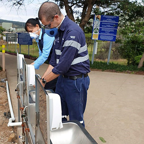 Hand washing and hand sanitisers are available at all sites. The practise of good personal hygiene, including washing of hands, using of hand sanitisers, sneezing into the elbow, etc., is also encouraged. Regular/routine cleaning of surfaces and equipment is in force and protocols are in place to clean and disinfect facilities and equipment. Sanitation is also provided on company transport.