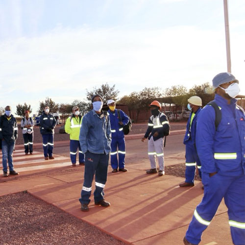 Social distancing, in order to reduce close contact and increase distance between people to mitigate contact exposure to COVID-19, is observed on all sites. It is also observed in transport, canteens, camps, in underground cages and for site meetings and gatherings.